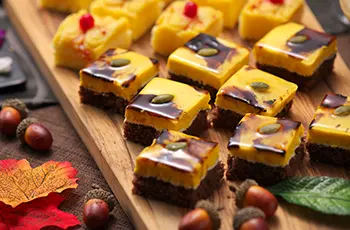 We offer a wide variety of treats, including petit cakes, bite-sized jellies, and fruits.