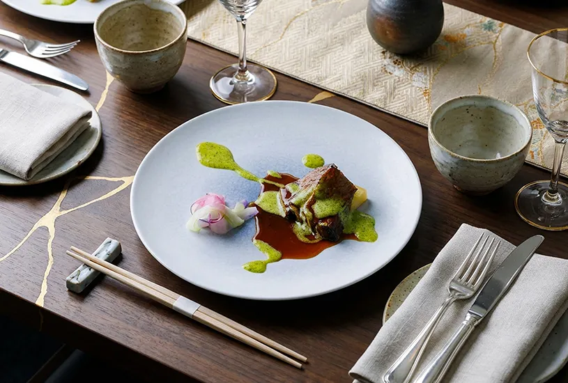 A full-course French kaiseki meal of locally sourced ingredients, enjoyed with chopsticks.